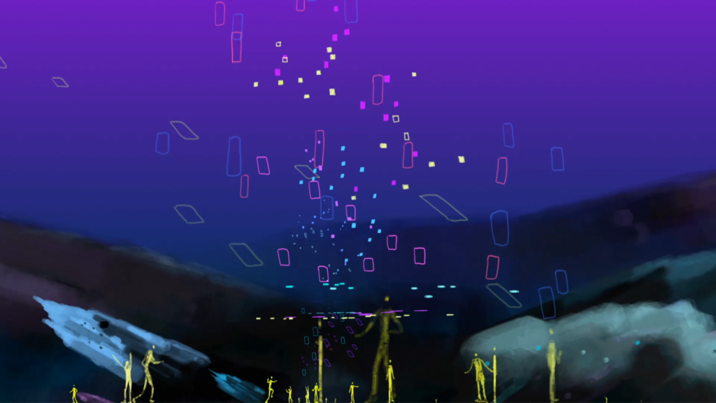 Ein riesiges, audiovisuelles Gemälde aus Licht, welches daran erinnert, dass die Geschichte der Menschheit schon immer durch die Auseinandersetzung mit dem Neuen und Anderen geprägt wird, wir uns davor nicht ängstigen sondern daran wachsen sollten.