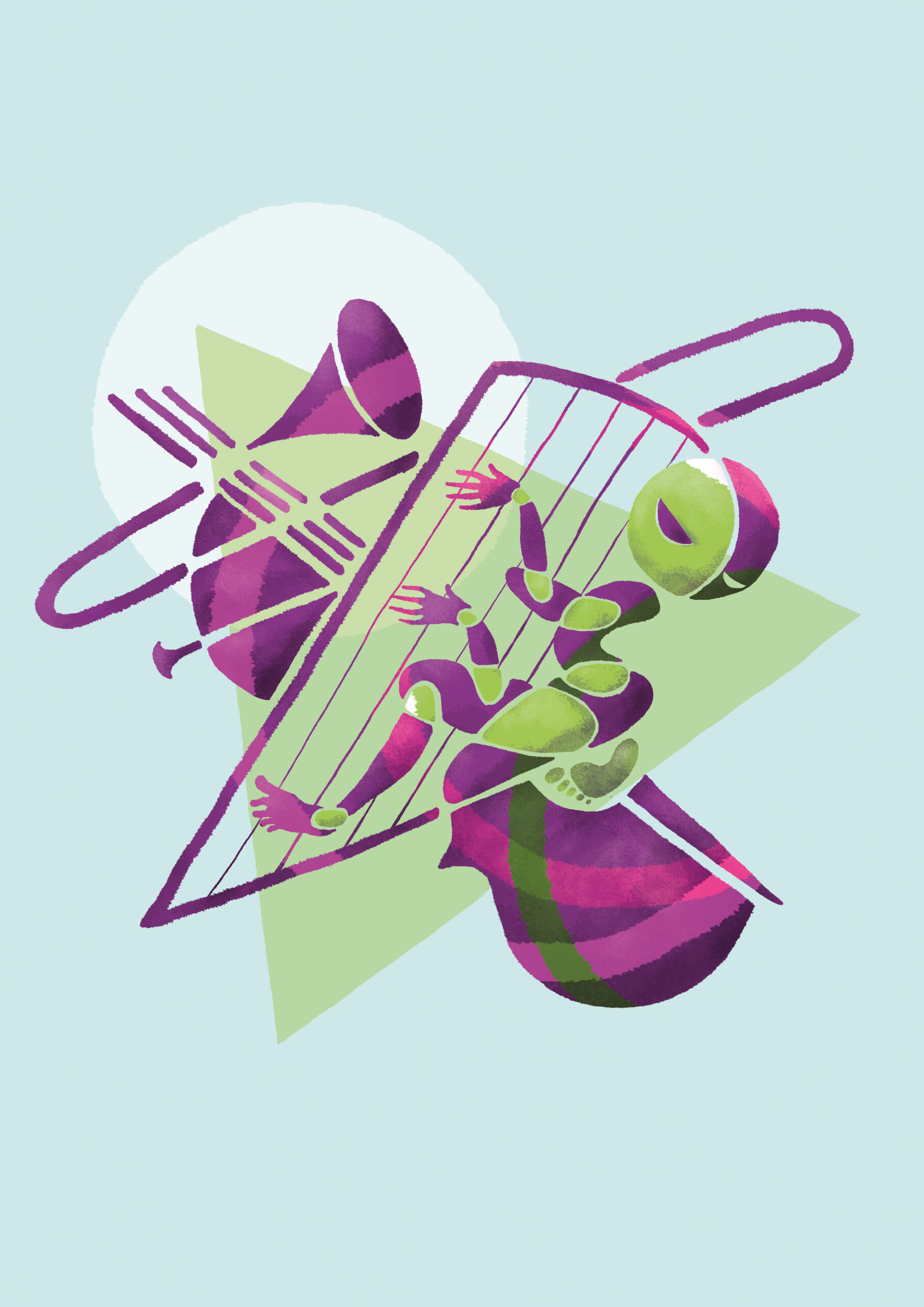Wie meine Lichtkunst, so haben auch meine Auftragsillustrationen sehr oft mit dem Thema Musik zu tun. Für den Landesmusikrat Berlin entwickelte ich Key Visuals für verschiedene Projekte, unter anderem für „Jugend Musiziert“. Für unsere eigenen Produktionen und Auftritte gestalte ich Plakate, Flyer und Pressematerial. (Beispiel-Arbeiten weiter unten)